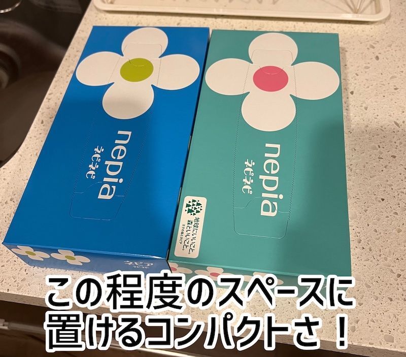 ティッシュ約2箱分のスペースで
